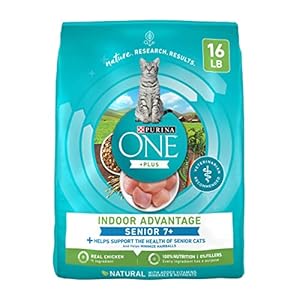 • Purina ONE High Protein, Natural Senior Dry Cat Food, Indoor Advantage Senior+ – 16 lb. Bag