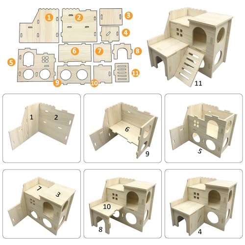 【Einfach zu Installieren】Unser Hamster haus mit mehreren Brettern Spleißen Methode, kein Kleber oder Nägel erforderlich, einfach zu installieren, das fertige Produkt ist fest und nicht leicht auseinander zu fallen.