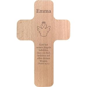 Holzkreuz mit individueller Gravur – personalisiert mit Name, Spruch, Motiv – Holz Kruzifix als Geschenk zur Geburt, Taufe, Kommunion, Firmung – Kreuz für Kinder und Erwachsene